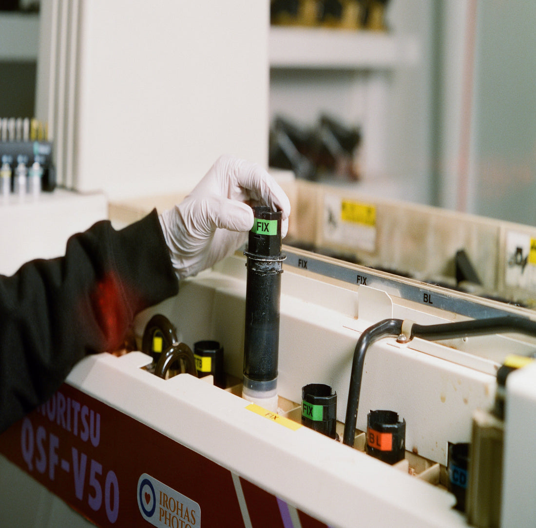 Developed on a Noritsu dry-in, dry-out roller-transport machine, guaranteeing uniform results from the first roll to the thousandth. With no hand processing and therefore no loading marks or streaks, every frame comes out clean and consistent. We run Ilford DDX chemistry for its fine grain, rich tonal gradation, and classic depth.